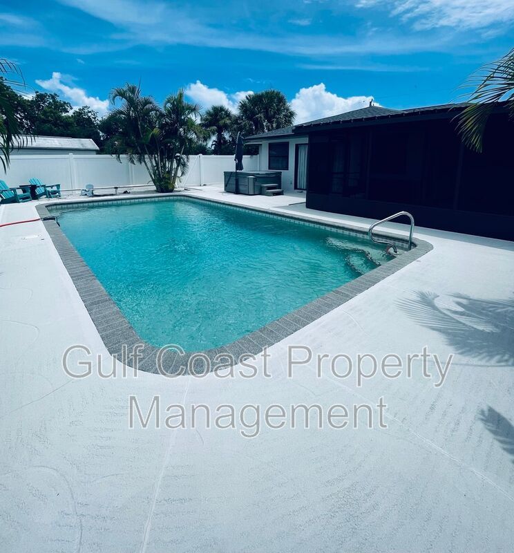 Welcome to this charming 2 bedroom, 2 bathroom house located in Englewood, FL. This home features new vinyl plank flooring (to be installed) and fresh paint throughout, giving it a modern and updated feel. The open concept floorplan allows for easy flow between the living room, dining area, and kitchen. Step outside to your own private oasis with a sparkling pool, perfect for relaxing or entertaining guests. The fenced yard provides privacy and security, while the private hot tub offers a luxurious touch. Don't miss out on this opportunity to make this house your new home! Lawn care and Pool maintenance included. $35 monthly Resident Benefit Pkg fee will be added to the rent.